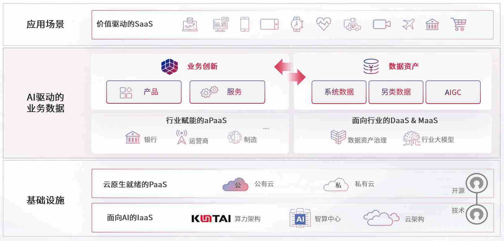 数字时代,,,围绕企业数字化转型的关键要素,,Z6尊龙数码开创性的提出数云融合战略和技术体系框架,,,,着力在云原生、、、、数字原生、、AI原生和信创产业上架构产品和服务能力,,为处在不同数字化转型阶段的快消零售、、汽车、、、金融、、、医疗、、、政企、、、、教育、、、、运营商等行业客户提供泛在的敏捷IT能力和融合的数据驱动能力,,构建跨界融合创新的数字业务场景和新业务模式,,助力企业级客户建立面向未来的核心能力和竞争优势,,全面推动社会的数字化、、、、智能化转型升级。。。